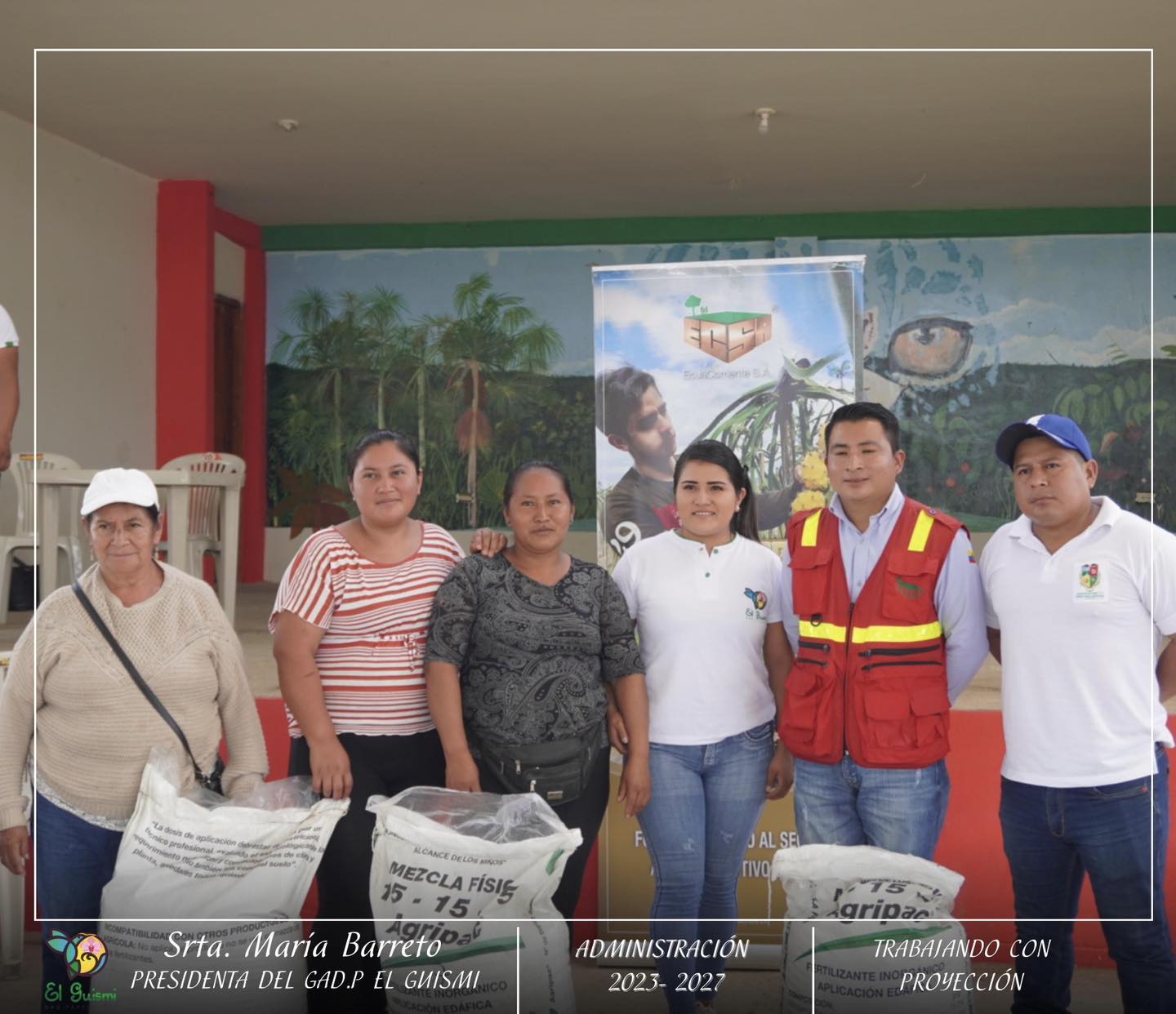 El Gobierno Autónomo Descentralizado de la Parroquia El Guismi, realizó la entrega de Alevines, Abono y Fertilizantes; todo esto fue gracias a la gestión realizada por la presidenta la Srta. María Barreto y la Sra. Sonia Zhizhpón vocal de la Comisión de Producción, junto con la empresa privada EcuaCorriente S.A. (ECSA) y la empresa pública Agropzachin EP.